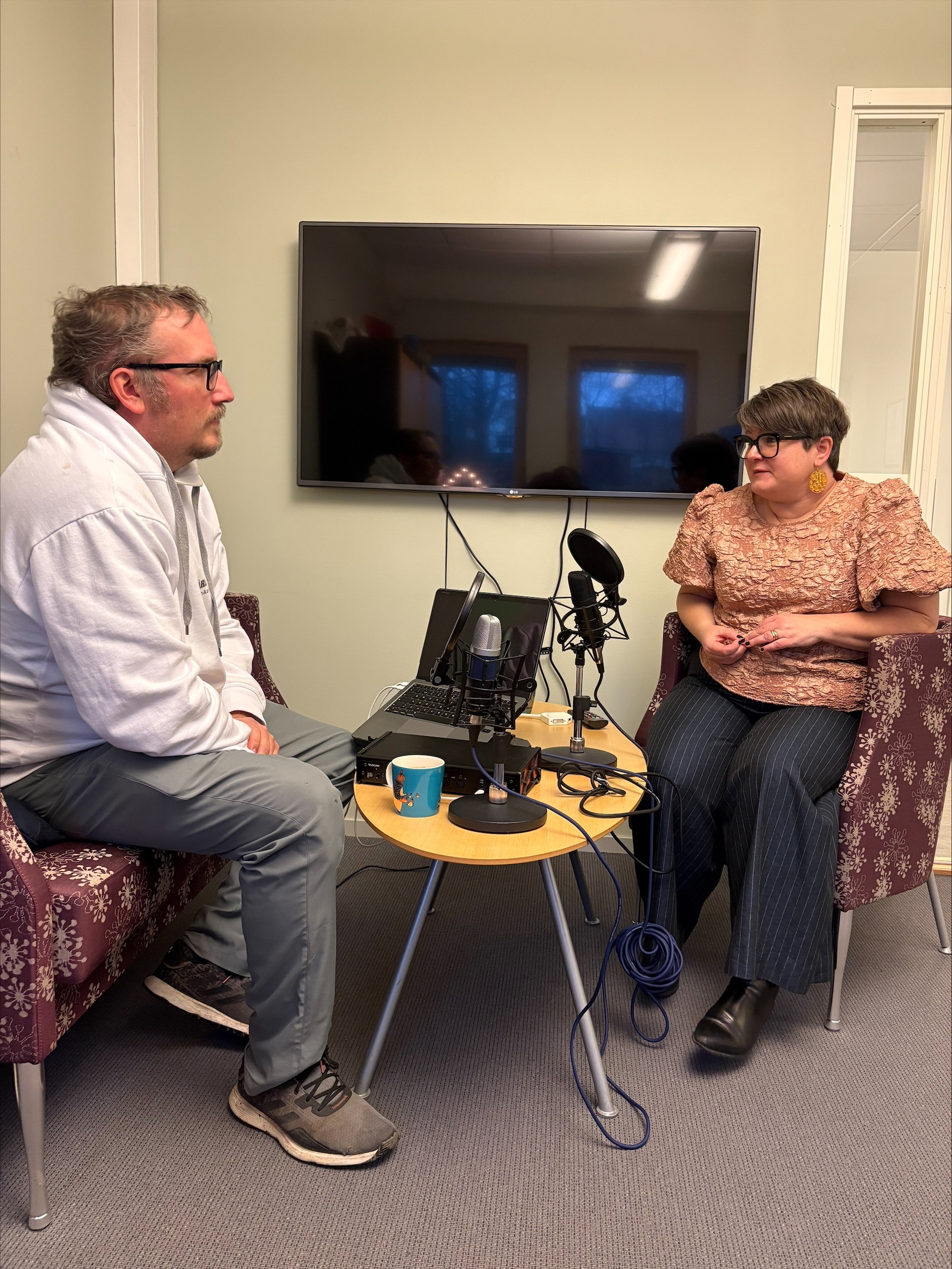 Fredrik på besök på Sveriges arbetsterapeuters kontor och gjorde en inspelning av ett avsnitt kring omställningen till god och nära vård med förbundsordförande Ida Kåhlin. Avsnittet planeras att släppas i början på 2026.